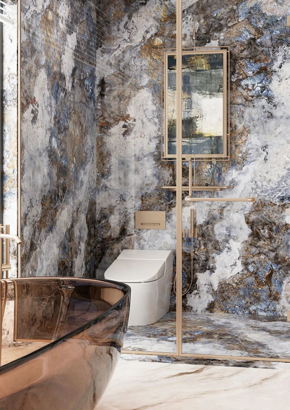 選自藍(lán)色珍稀奢石,深邃藍(lán)色如海洋神秘幽靜,白色紋理似海浪翻涌,經(jīng)工藝雕琢,將意式奢華自然美感凝于磚面,徹底釋放海底星空的瑰麗與浪漫。